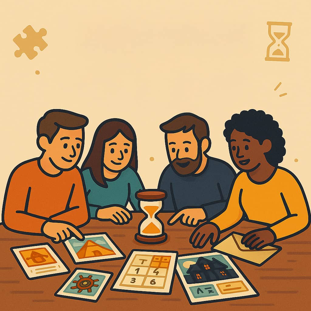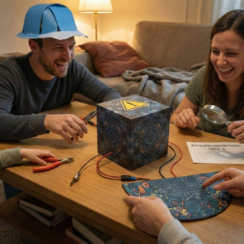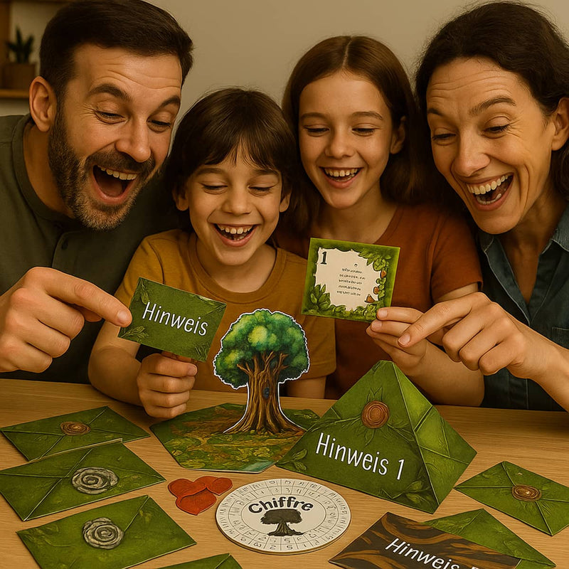 Unsere Sets funktionieren ab 1 bis 12 Spielern. Empfohlenes Mindestalter ist 10 Jahre; mit etwas Hilfe haben aber schon Achtjährige Spaß. Durch die Hinweisekarten passt sich der Schwierigkeitsgrad flexibel an gemischte Gruppen an.